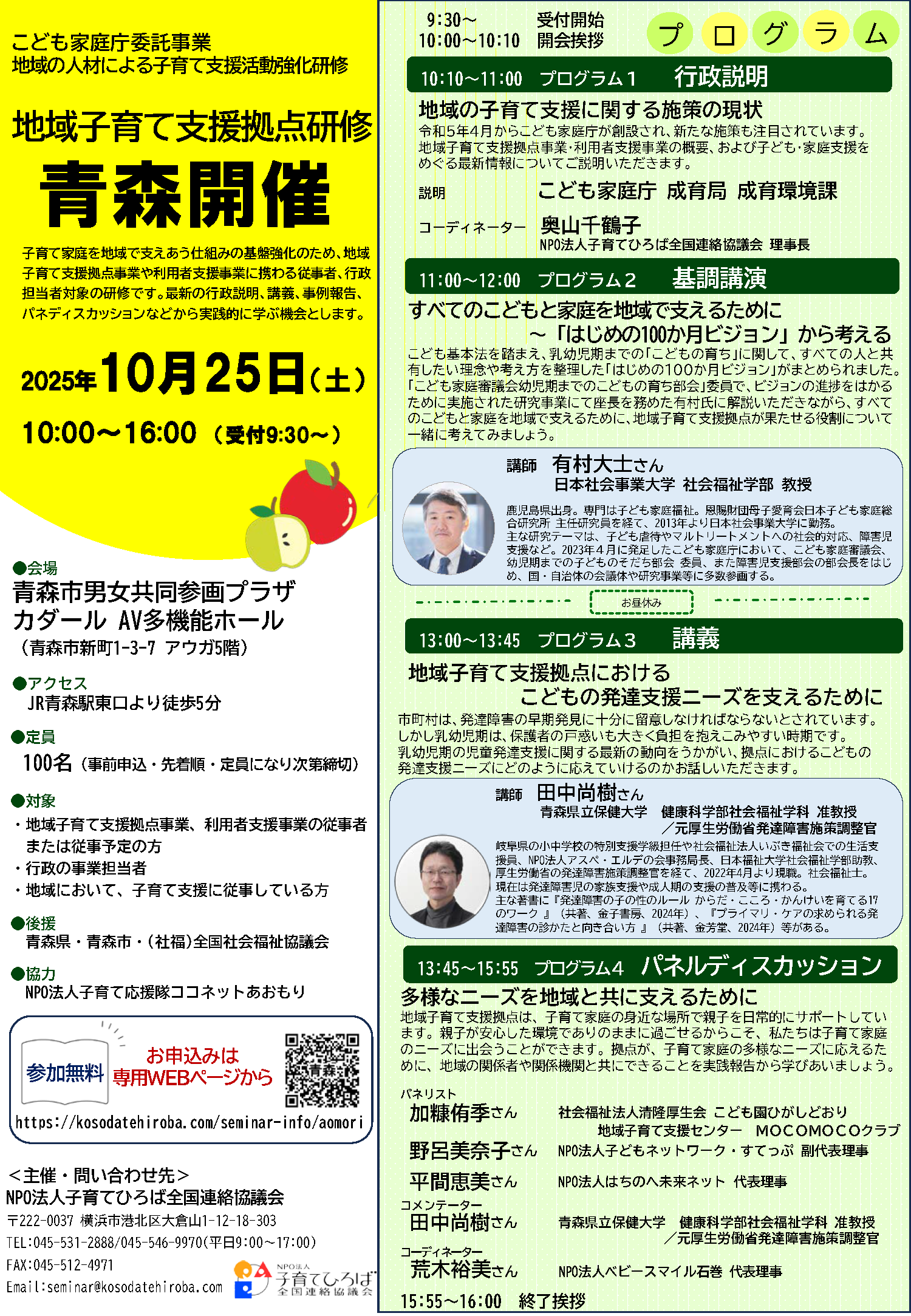 こども家庭庁委託事業 地域の人材による子育て支援活動強化研修地域子育て支援拠点研修 青森開催