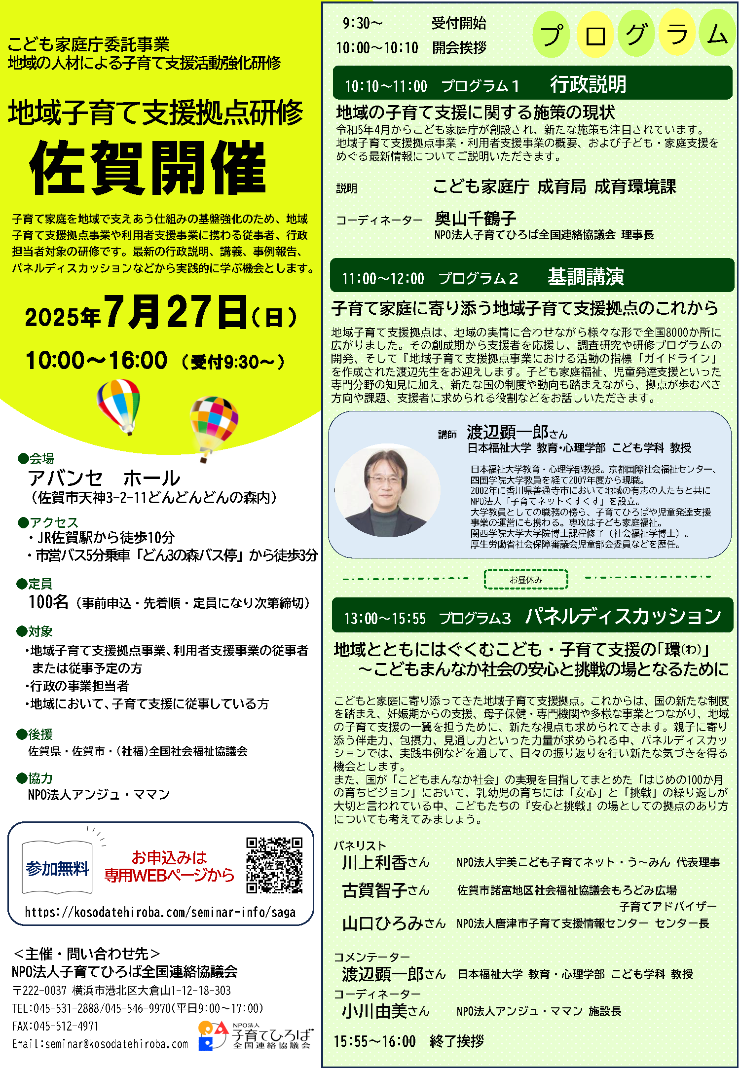 | 主催 | NPO法人子育てひろば全国連絡協議会 |